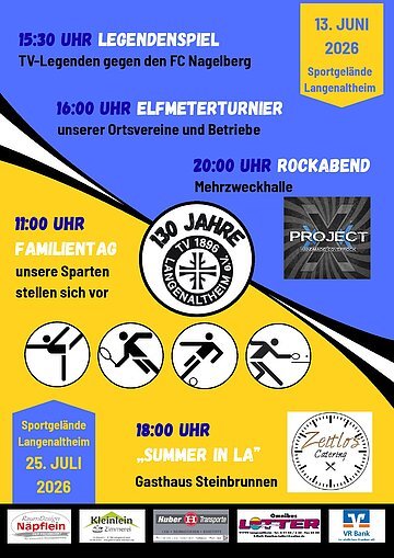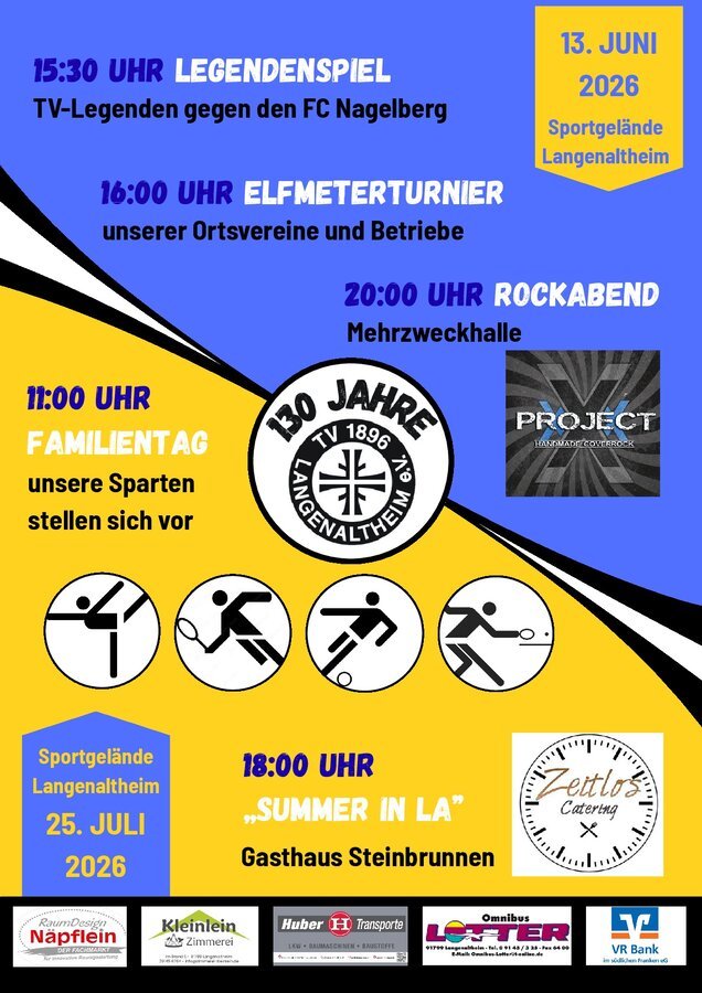 Das Jubiläum zum 130-jährigen Bestehen des TV 1896 Langenaltheim e.V. wird an zwei Tagen gefeiert.