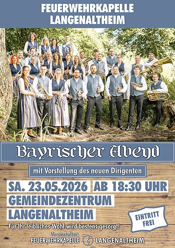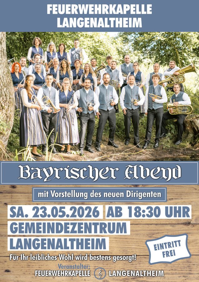 Die Feuerwehrkapelle Langenaltheim läd ein zum Bayerischen Abend mit Vorstellung des neuen Dirigenten am