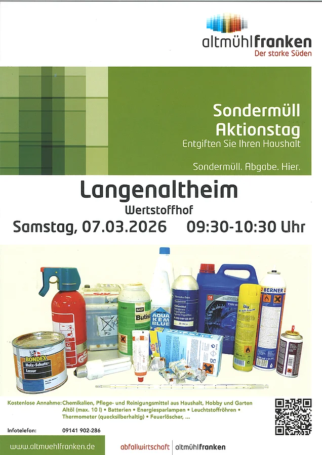 Nutzen Sie die mobilen Sondermüll-Aktionstage, die flächendeckend im Landkreis mehrmals im Jahr angeboten werden.